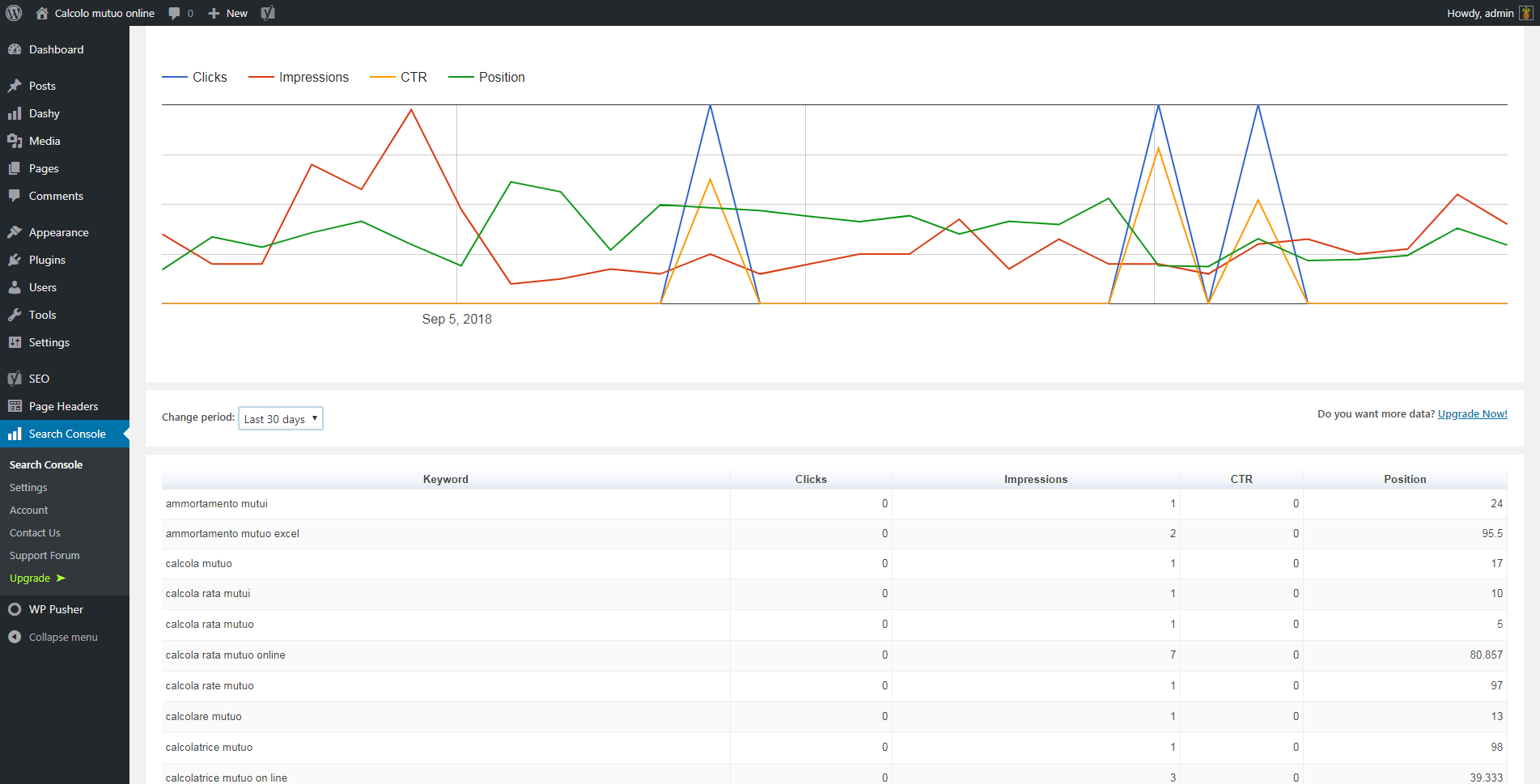 - WordPress widget chart (position|clicks|impressions|CTR)